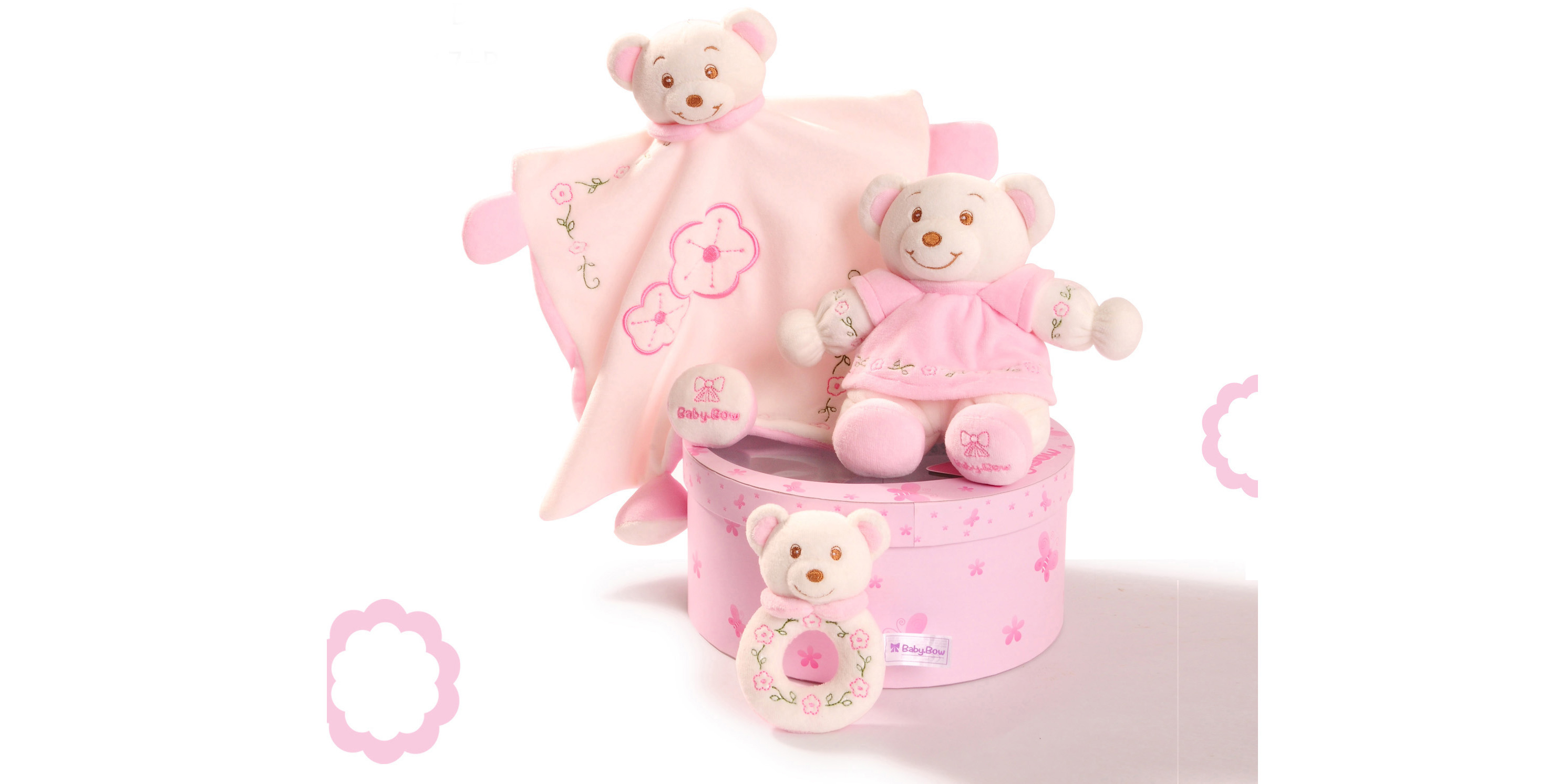 1. Bawełniany misio kocyk ozdobiony kwiatuszkiem. Wymiary: 25cm x 25cm 2. Bawełniana misio grzechotka ozdobiona kwiatuszkiem. 3.... >>