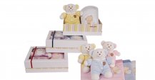1. Bawełniany misio kocyk ozdobiony gwiazdkami. Wymiary: 25cm x 25cm 2. Bawełniana misio grzechotka. 3. Bawełniany misio... >>