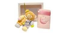 1. Bawełniany kocyk - miś z haftowanym kwiatuszkiem o wymiarach 25cm x 25cm 2. Wysokiej jakości bawełniana grzechotka 3.... >>